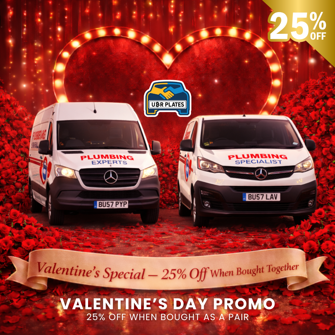 A bold, eye-catching trade-ready plate pairing designed for plumbers, drainage specialists, and emergency repair services. This matched set is memorable, literal, and built to generate attention — turning everyday callouts into instant brand recall.