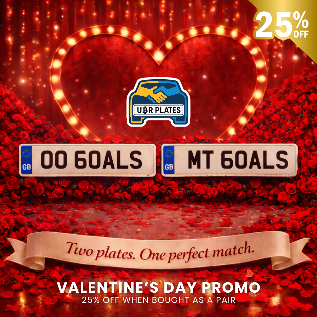 A playful yet meaningful plate pairing inspired by football scoring language — perfect for fans, teams, community pitches, or anyone who wants a clever, sport-related twist on registration plates.